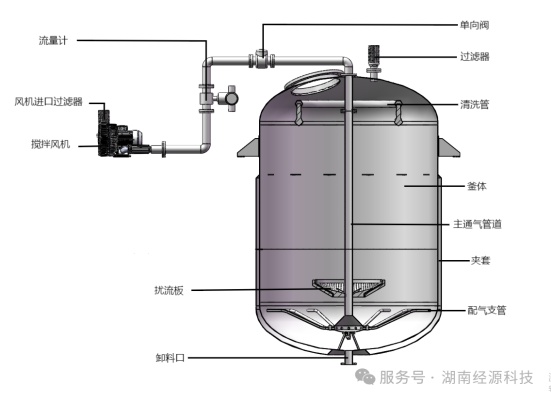 目前现有的搅拌预混设备主要采用机械搅拌的形式,采用电机通过搅拌轴带动叶片旋转进行搅拌,通过叶片的旋转对液流产生的剪切作用使混合溶液混合均匀。其主要由预混罐体、动力系统、搅拌轴、搅拌叶片等组成。 机械预混罐结构组成目前的使用中,机械预混罐存在诸多问题,如:1、混合不均匀:机械预混设备叶片尺寸小,剪切范围小,叶片之间的间隙较大,物料不能实现充分搅拌;在搅拌轴中心处,易产生死区、短路等现象,虽内设置扰流